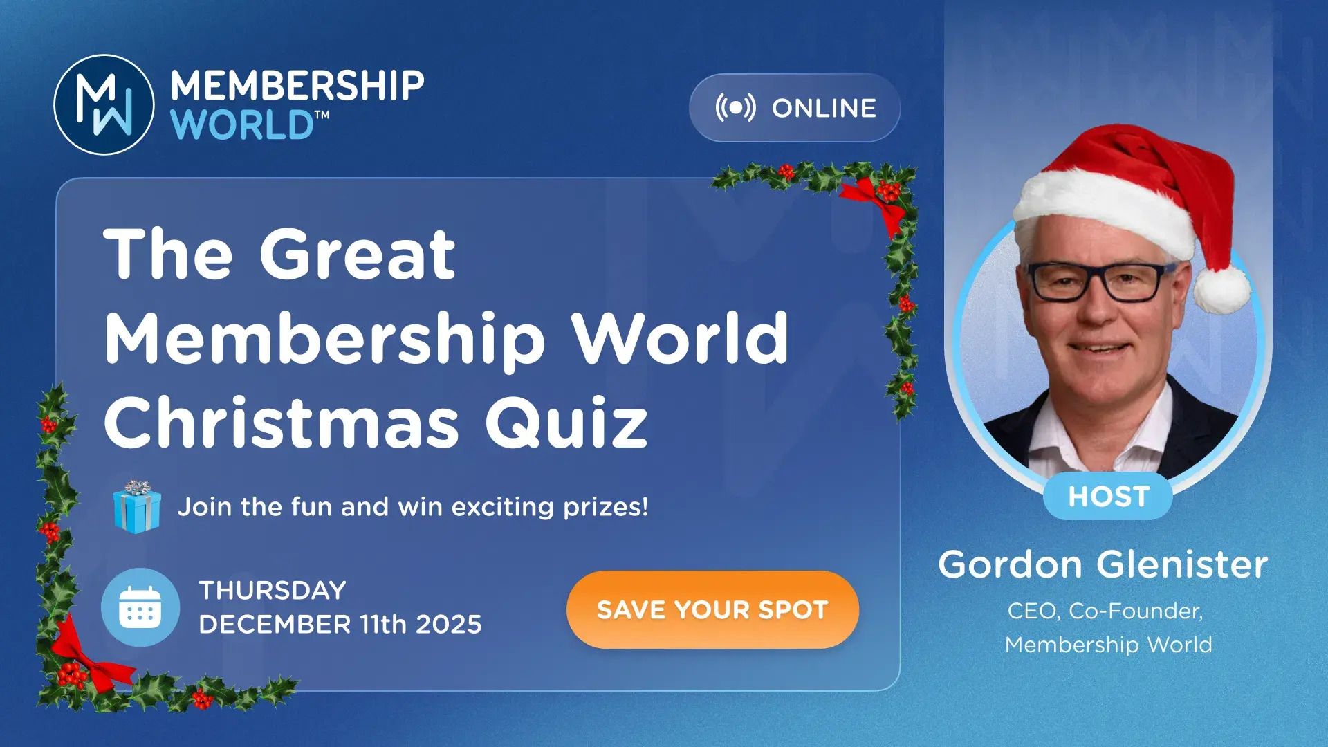 Take part in The Great Membership World Christmas Quiz, hosted by Gordon Glenister — a lively virtual quiz bringing together members, suppliers, and associations for trivia, teamwork, and holiday cheer. Exciting prizes, laughter, and festive competition await!